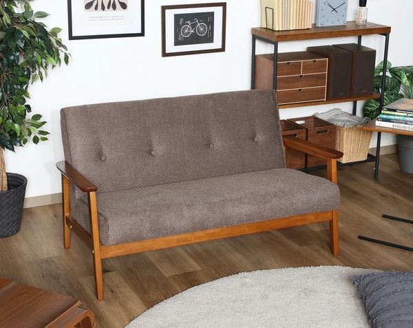 2人掛け 厚手 ファブリックソファ ブラウン コンパクト リビング ダイニング