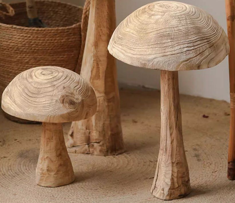 木製キノコの置物侘び寂び風レトロ実木民宿風飾り庭落地大置物庭造景大サイズ