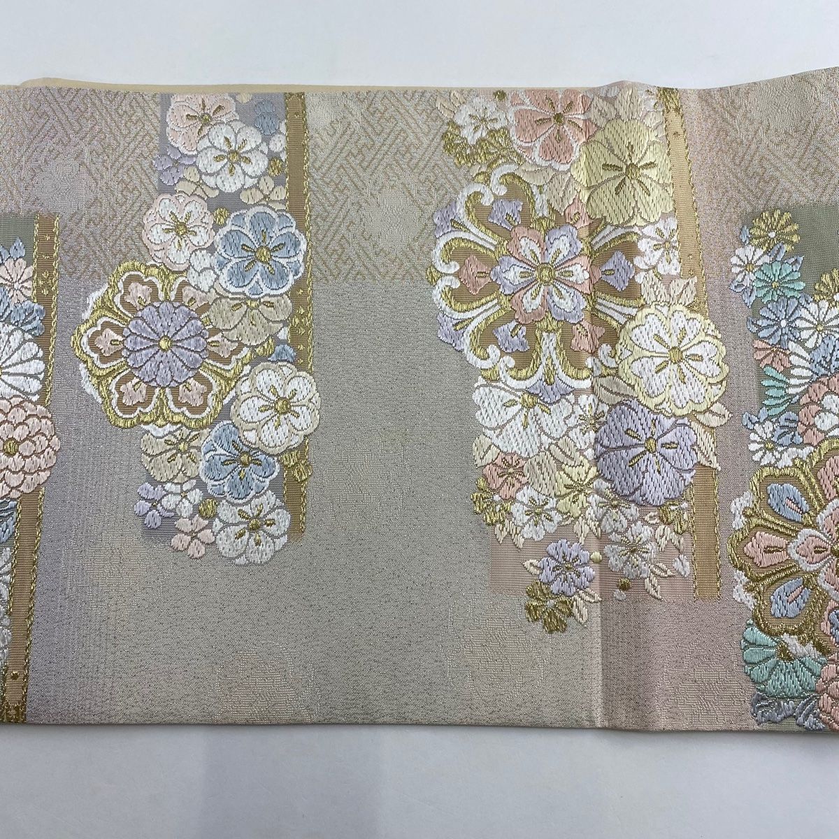 袋帯 秀品 草花 金銀糸 灰色 六通 正絹