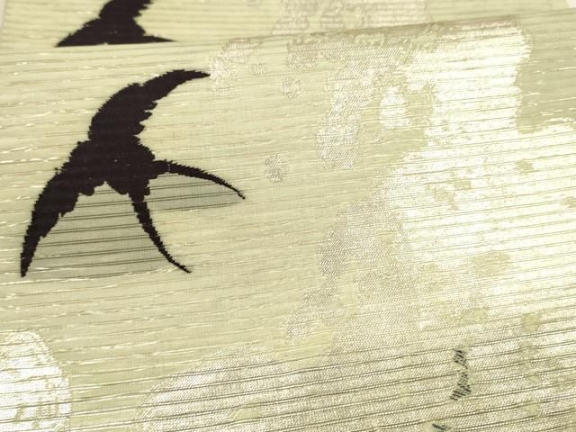 平和屋着物 夏物 アンティーク 大正ロマン 丸帯 燕 立波文 銀糸 正絹 cm