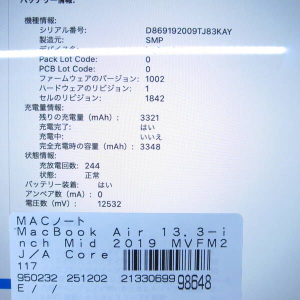 〔 品〕 MacBook Air 13.3-inch Mid-2019 MVFM 2 J A Core_i 5 1.6 GHz 8 GB ゴールド 〔10.15 Catalina〕 295