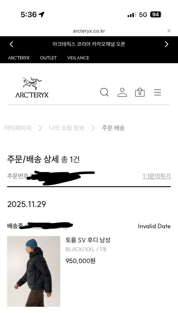 ホームページ 25 fw ARC TERYX アークテリクス ダウン Thorium SVフーディ ブラック XXL