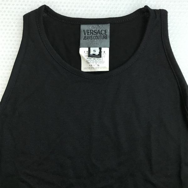 イタリア製 ヴェルサーチ Versace Jeans Couture 蛍光スパンコール装飾 タンクトップ レディースS 黒 Tops tank top shirts TBH 627