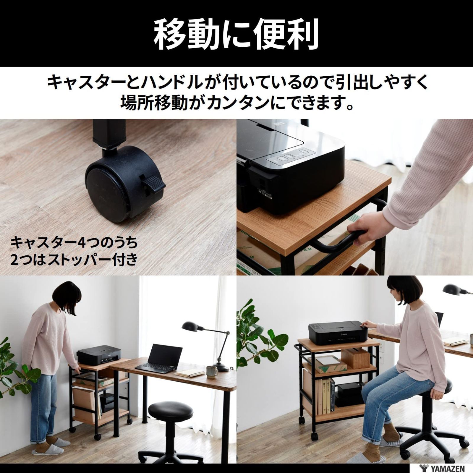 数量 キャスター付き 幅35×奥行55 61.5 ×高さ70 cm サイドワゴン A 4対応 棚板高さ調節 プリンター デスク 台 ゲーム ラック 山善 YAMAZEN 組立品 オーク MWT-60 OAK SBK