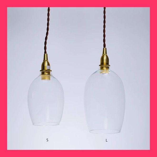 .手吹きの自然なガラスの流れや歪みが美しく見えるように、縦長の形と丸いラインで仕上げたペンダントライトです。