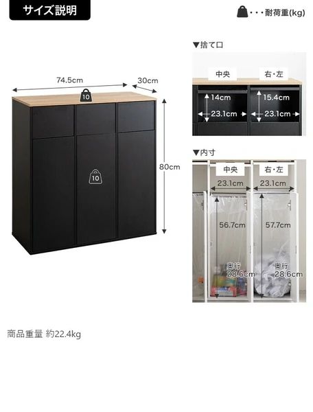 幅74.5 cm 3連式ゴミ箱 ラック ダストボックス おしゃれ