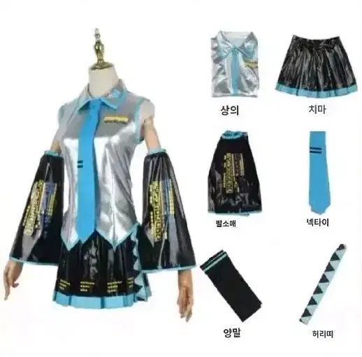 初音ミクのコスプレオリジナルをフルセットで販売しています。トップ、スカート、アームバンド、ネクタイ、ウエストバンド、ソックス、ウィッグが含まれます