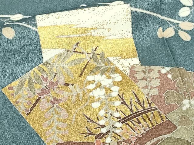 平和屋着物 男性 訪問着 単衣 刺繍 色紙草花文 暈し染め 金彩 正絹 sf
