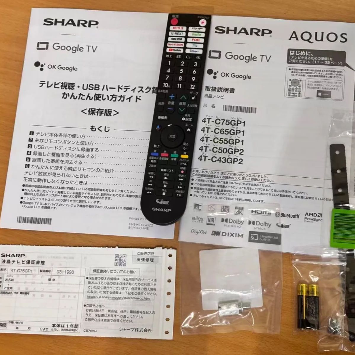 展示 シャープ AQUOS XLED 4 T-C 75 GP 1 75インチ K液晶テレビ 24年製