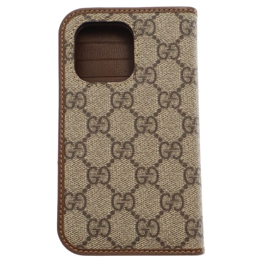 GUCCI グッチ GGスプリーム iPhone 15 Pro手帳型ケース アイフォンケース PVC ブラウン ベージュ 760185