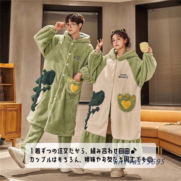 ポケット付き パジャマ もこもこ あったかい レディース メンズ 上下セット ペアパジャマ 冬 カップル お揃い 長袖 韓国 暖かい 部屋着 ペア kni 4 a 175695