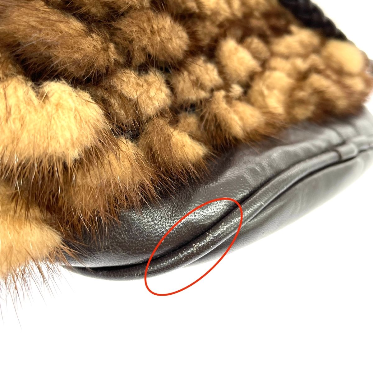 Mink ミンクファー 巾着トートバッグ タッセル リアルファー レザー ブラウン レディース