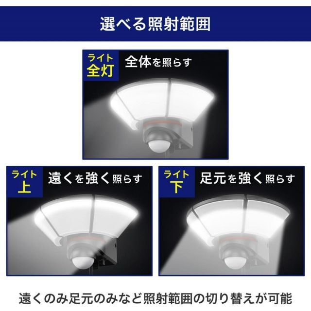 ●点灯保持時間:約5秒/30秒/3分間※点灯中に人を検知すると点灯し続けます。