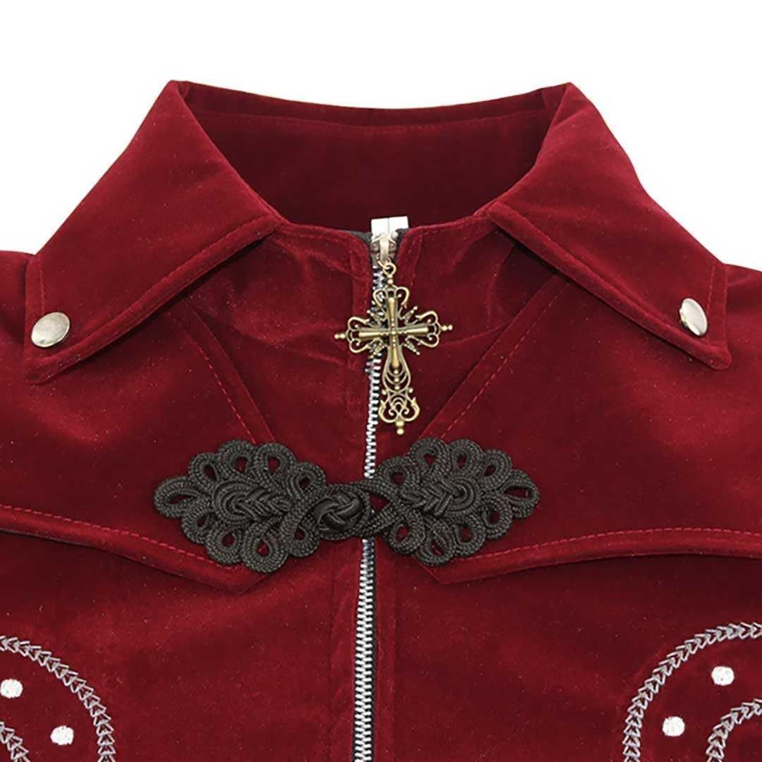 ジャケット ドラキュラ ワインレッド ヴァンパイア 吸血鬼 十字架 貴族 コスプレ ベロア 長袖 ケープ 中世 ヴィンテージ マント 騎士 ナイト 服 旅人 洋服 コンサート 編み上げ 衣装 メンズ レディース ファッション ハロウィン ハロウィーン パーティー ゴシック 舞台 結婚式 かっこいいい ゴスロリ ゴシック パンク ロック ファッション スチームパンク ヴィジュアル系 V系 モード系 コスプレ ステージ
