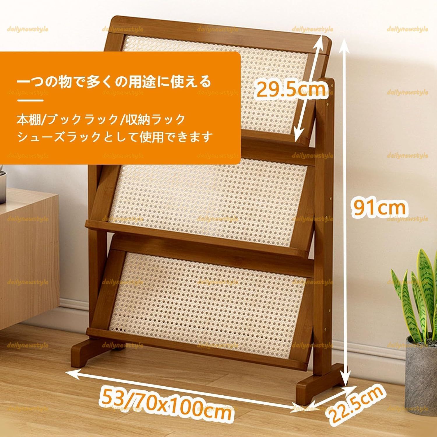 推薦 マガジンラック マガジンスタンド おしゃれ 雑誌ラック 竹 籐のバックパネル 新聞ラック パンフレットスタンド パンフレットラック 大容量 文学ディスプレイスタンド チラシスタンド 絵本ラック 組み立て簡単 展示会 53 x 22.5 91.5 cm