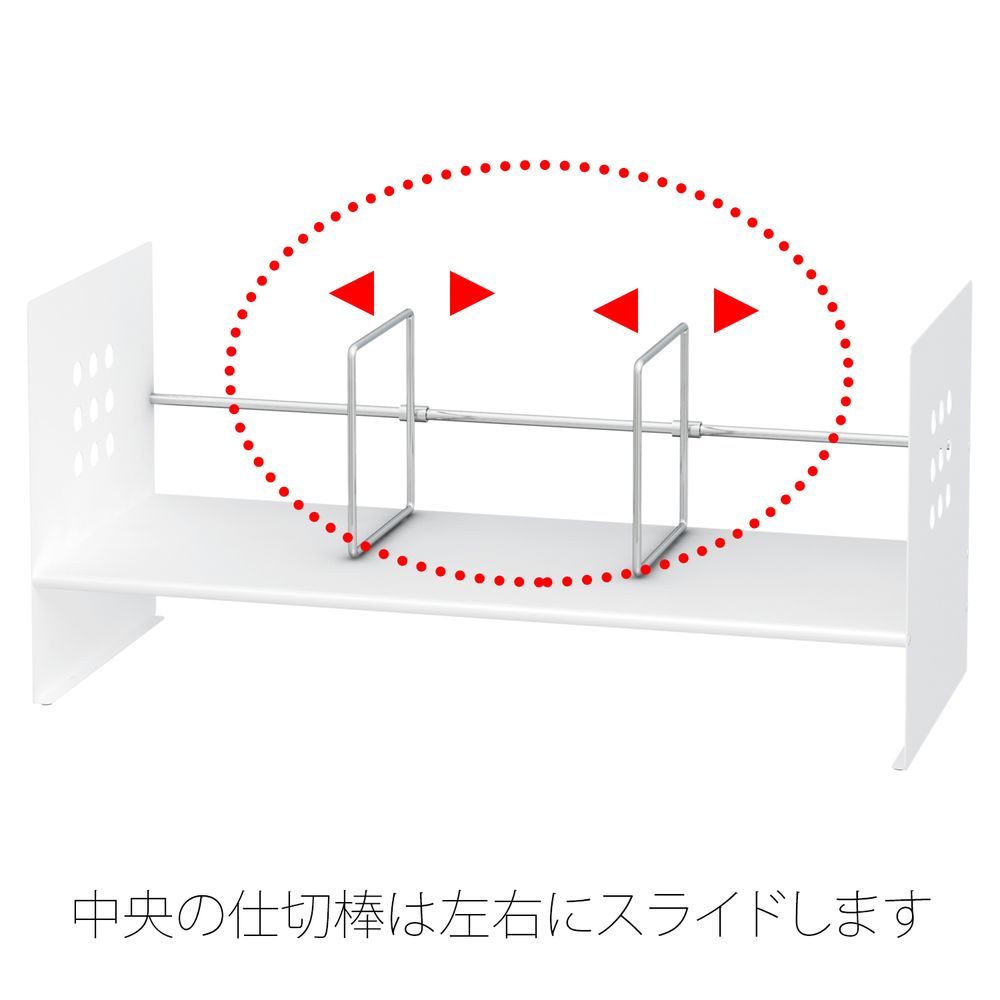 スライド式本立仕切棒は、好きな場所に移動できる仕切棒です。