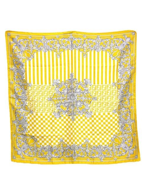 フェンディ FENDI スカーフ シルク イエロー FF ズッカ プリント ✰AA