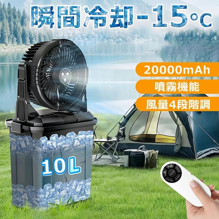 キャンプ 扇風機 ミストファン 20000 mAh 大容量バッテリー ミスト噴霧機能 瞬間冷却 10 L水タンク 卓上扇風機 強力送風コードレス USB充電式