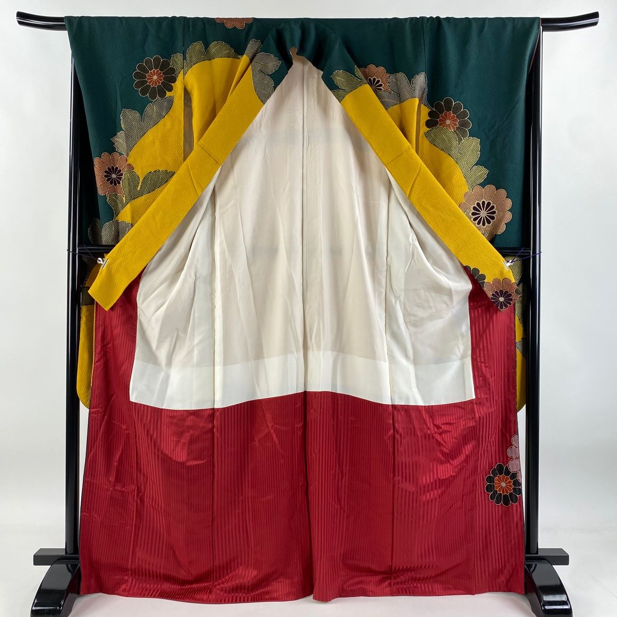表地所々にシワ、左衿に糸つれ、表地所々に金彩の変色がございます。