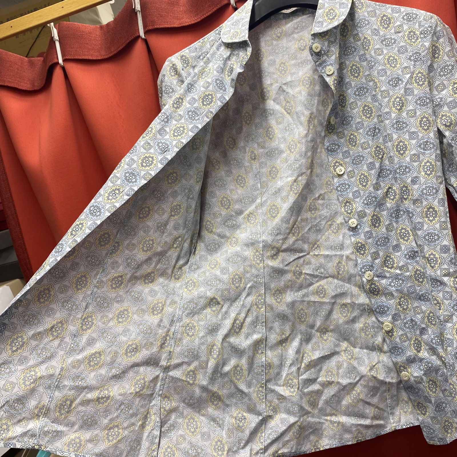 PRADA プラダ シャツ 長袖 ボタンダウン 総柄 ライトブルー系 イタリア製