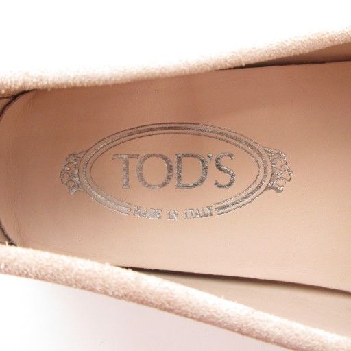 トッズ TOD S ゴンビーニ ドライビングシューズ 37.5 24.5 cm ダブルT ロゴ スエード ベージュ AE