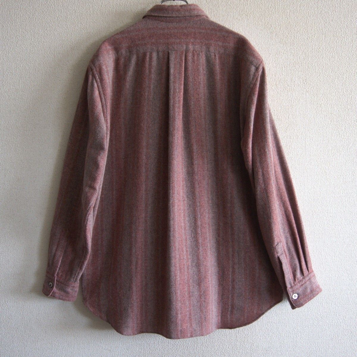 ラウンドシルエットのウールストライプシャツでございます。