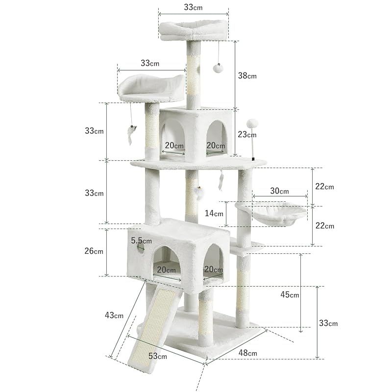 AIFY キャットタワー 据え置き スリム 大型猫 大型 中型 多頭飼い ハンモック おしゃれ 木製 爪とぎ おもちゃ 猫タワー ねこ 安定 頑丈 爪研ぎ 麻紐 子猫 シニア 省スペース 170 cm アイボリー 1
