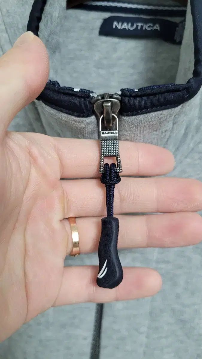 NAUTICA ノーティカ グレーxネイビー ナイロン POINT ツーウェイ ジップアップ Tシャツ XL
