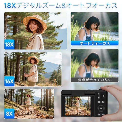 デジカメ 5 K 7500万画素 デジタルカメラ 180度回転 スクリーン 2.8 インチスクリーン 18 倍デジタルズーム オートフォーカス 32 GB U 3 高速 micro SD カードをプレゼントします 近接撮影 定時撮影 内蔵フラッシュ 自撮り po