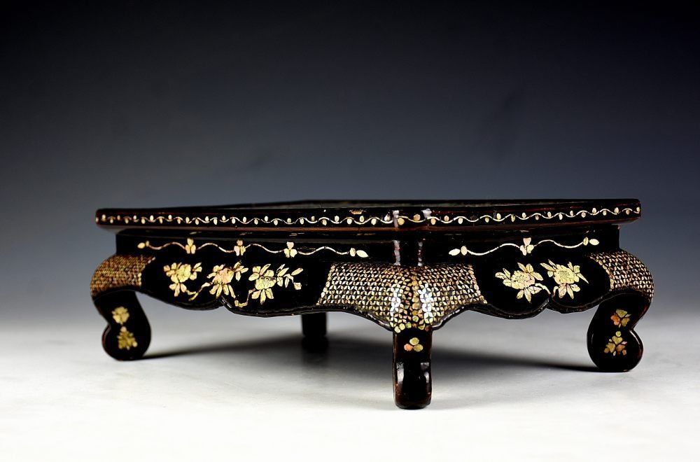 蔵A 5496 中国古美術 細密青貝螺鈿卓 古箱 清朝期