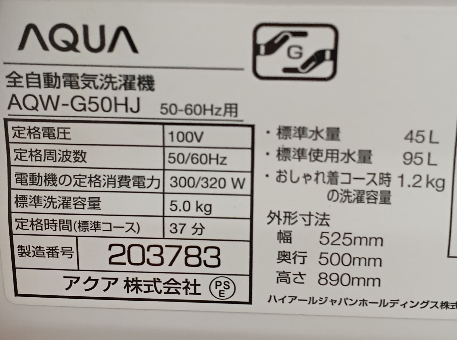 ・型番:AQW-G50HJ
