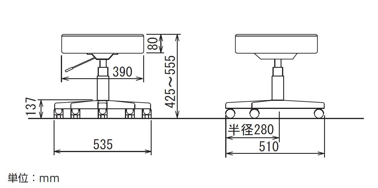 材質:張地/PVCレザー、脚/ナイロン、キャスター/ナイロン(ウレタン巻き)、クッション/ウレタンフォーム