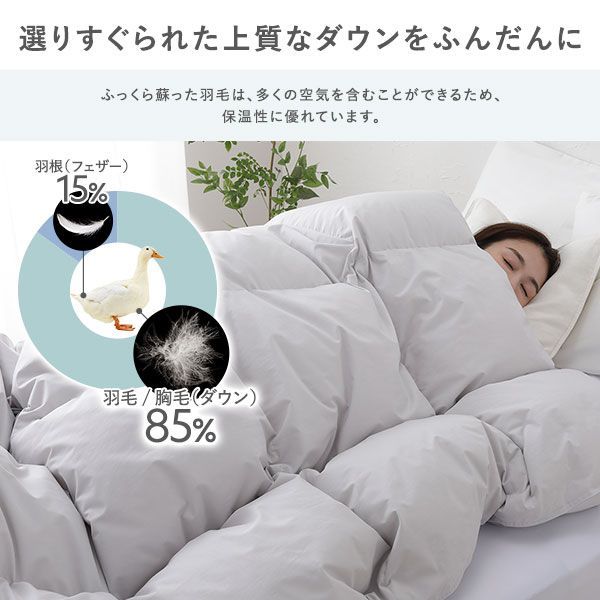 羽毛布団 掛け布団 リサイクル ダウン 85% シングル ライトグレー 無地 国産 日本産 抗菌 防臭 防ダニ 静電気防止加工 清潔 保温性 吸放湿性 耐久性 丈夫 収納ケース付き 布団 掛布団 寝具 寝室家具 インテリア雑貨 インテリア家具 ベッドル