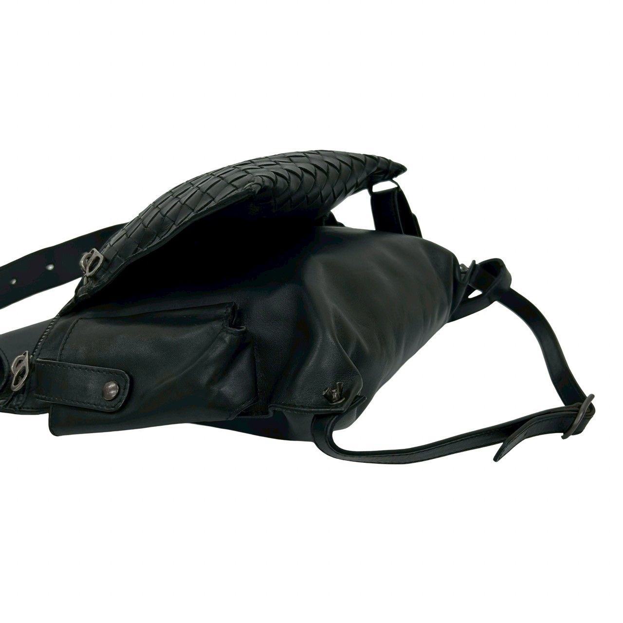 袋付き BOTTEGA VENETA ボッテガヴェネタ イントレチャート レザー 本革 ボディバッグ ショルダーバッグ ブラック 19924
