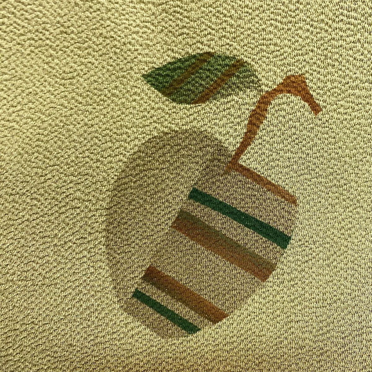 名古屋帯 林檎 ちりめん 金彩 抹茶色 正絹