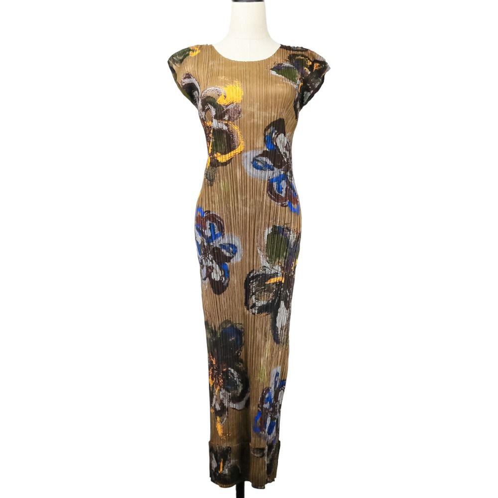 【商品名】プリーツプリーズ イッセイミヤケ ロングワンピース トップス ショール 3点セット PP61-JK752/PP61-JH755 ブラウン