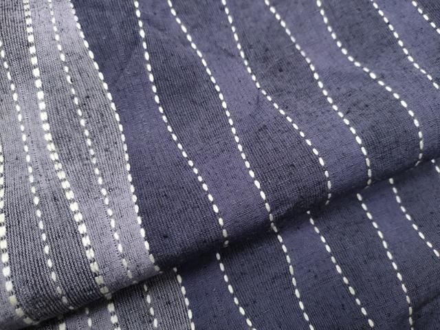 平和屋着物 全通柄 九寸名古屋帯 紬地 刺し子 よろけ縞 正絹 hy