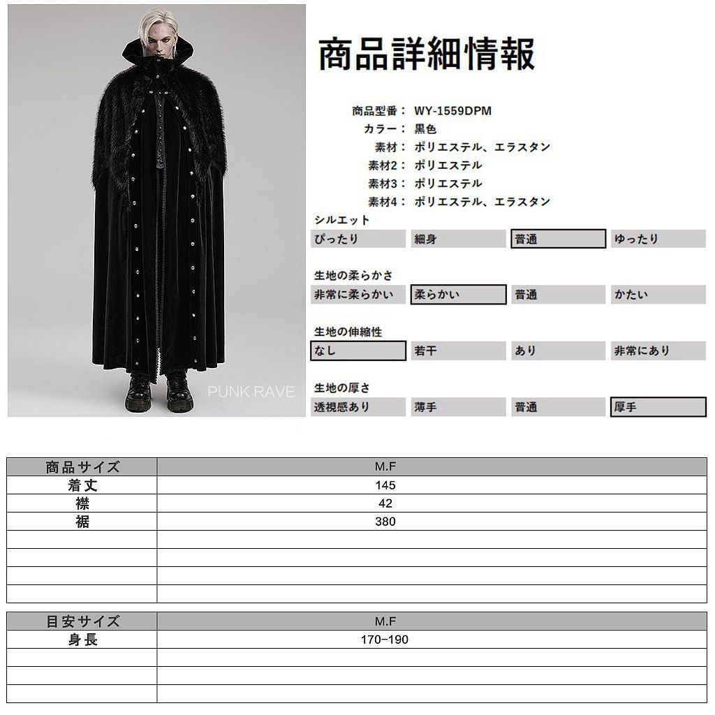 WY-1559DPM-BK フェイクファーケープドッキングハイネック マント クローク ファッション ゴシック ゴスロリ パンク ロック ロリィタ ビジュアル系 V系 モード系 地雷系 サブカル 個性的 コスプレ 骨格ストレート 骨格ウェーブ 骨格ナチュラル おしゃれ 服 衣装