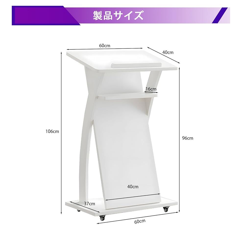 外箱段ボールにキズ 汚れアリ 中身は です 演台 演説台 司会台 木製 キャスター付き ホワイト ×106 cm 厚18 mm