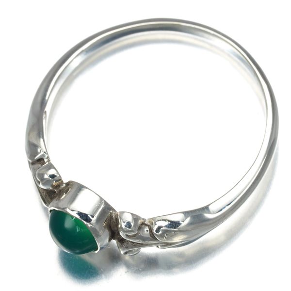 色美しいグリーンカルセドニーの輝きを添えたジョージジェンセンのシルバーリングです。