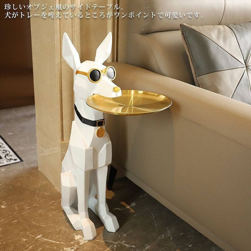サイドテーブル おしゃれ 北欧 テーブル ナイトテーブル トレイ 収納 鍵置き 玄関 台 ソファ ベッド オブジェ 犬 ドーベルマン シェパード インテリア ホテルライク ギフト UT-08 WH
