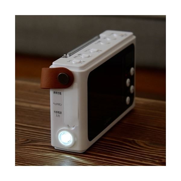 ●手回し充電、単3形乾電池(3本)、モバイルバッテリー、AC100Vの4WAY給電仕様。