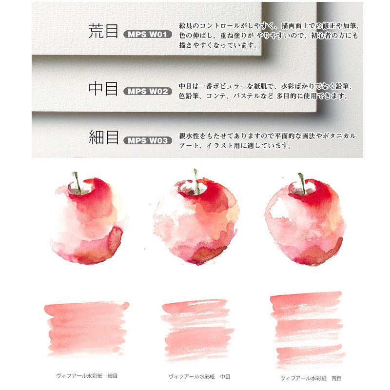 マルマンの代表的な水彩紙。発色がよく、絵具を動かしやすいように「にじみ止め」の工夫がしてあります。
