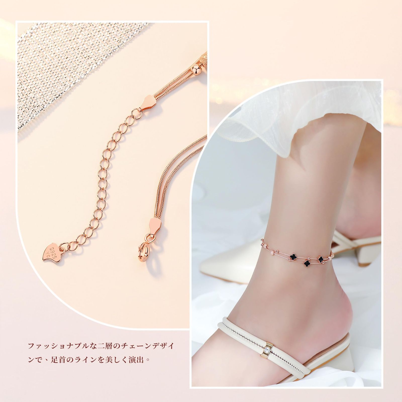 シルバー925 アンクレット レディース つけっぽなし 2連チェーン 四つ葉のクローバー 人気 アクセサリー ギフト バレンタインデー