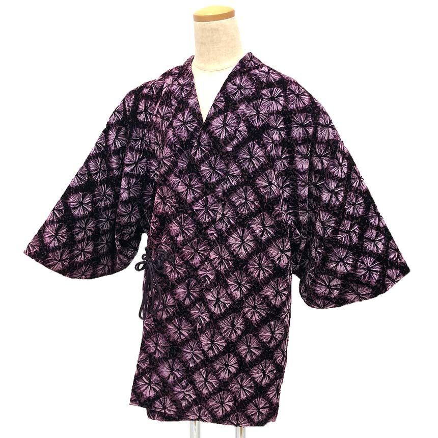 艶感のある紫の濃淡のアセテート100%のベルベットの着物用コートです。
