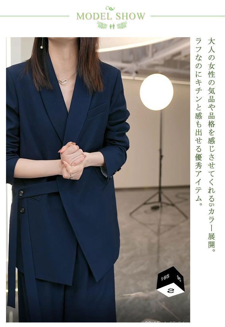 セットアップ パンツスーツ テーラードジャケット ワイドパンツ レディース ハイウエスト ポケット カジュアルスーツ ビジネススーツ ダンス衣装 こなれ感 おしゃれ シンプル ルーズ ラフ ゆったり P 1 N 2664