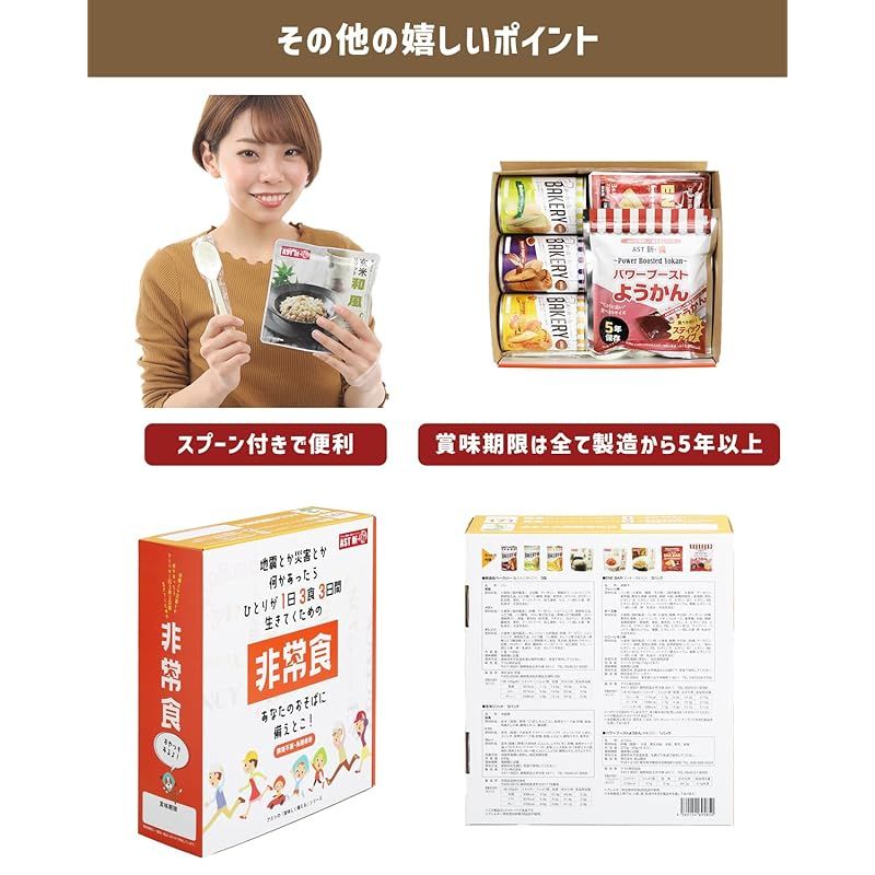 商品名:非常食 3日間非常食セット 長期5年保存 調理不要 本棚に収まるコンパクトサイズ スプーン付 防災 保存食 美味しく備える AST アスト 防災防犯ダイレクト