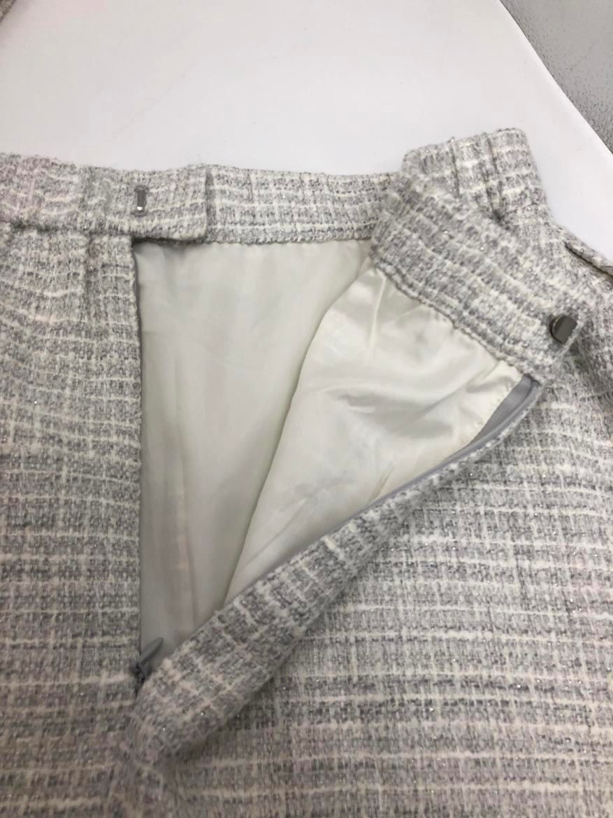 組曲 ラメループ モールツイード ジャケット スカート セットアップ スーツ size 3 ライトグレー系 レディース
