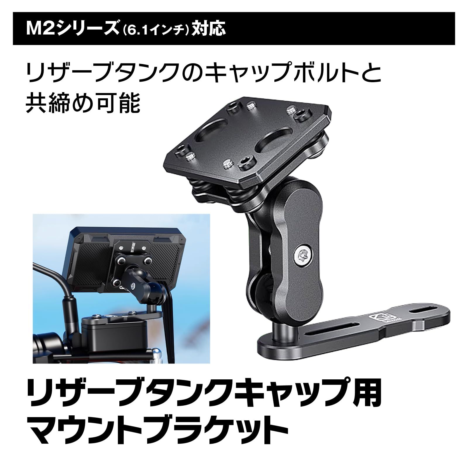 【特徴】M2シリーズ(6.1インチ)を装着可能。リザーブタンクのキャップに取り付けるブラケット。