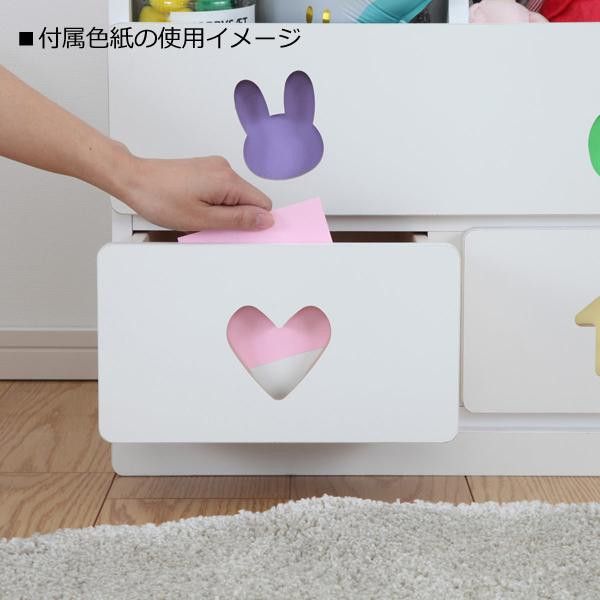 お子さまが楽しみながらおかたづけできるおもちゃ箱です。マークは色紙でオリジナルのカラーにできたり、写真やお気に入りのカードを入れて楽しくおかたづけの習慣が身につきます。